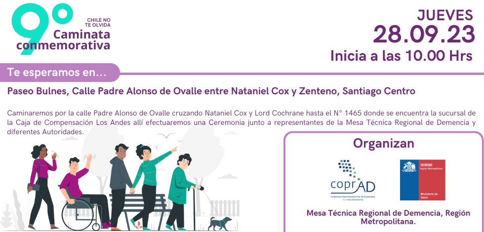 ¡Únete a la caminata conmemorativa del día del Alzheimer! El próximo jueves 28 de septiembre, a las 10:00 horas, se