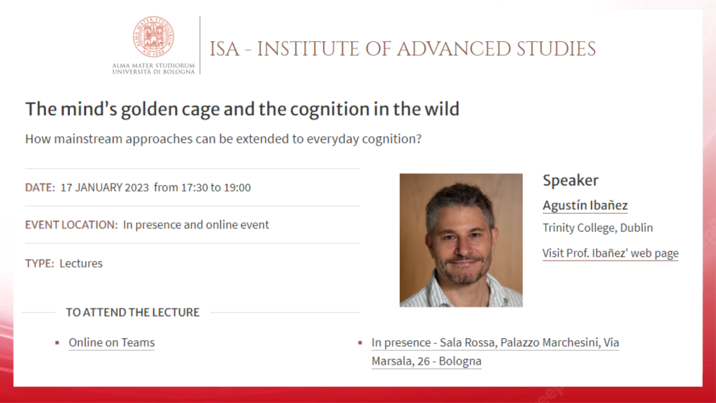 Nuestro director Agustín Ibáñez estará en el hermoso Palazzo Marchesini del Institute of Advanced Study – University of Bologna conversando
