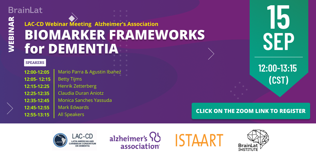 Join us: LAC-CD Alzheimer’s Association Webinar (September 15th 12:00- 13:15 CST) on Biomarkers including presentations from Betty Tijms, Henrik